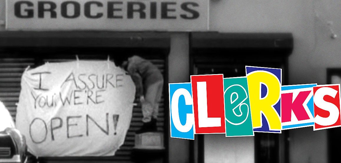 A day in the lives of two convenience clerks named Dante and Randal as they annoy customers, discuss movies, and play hockey on the store roof.